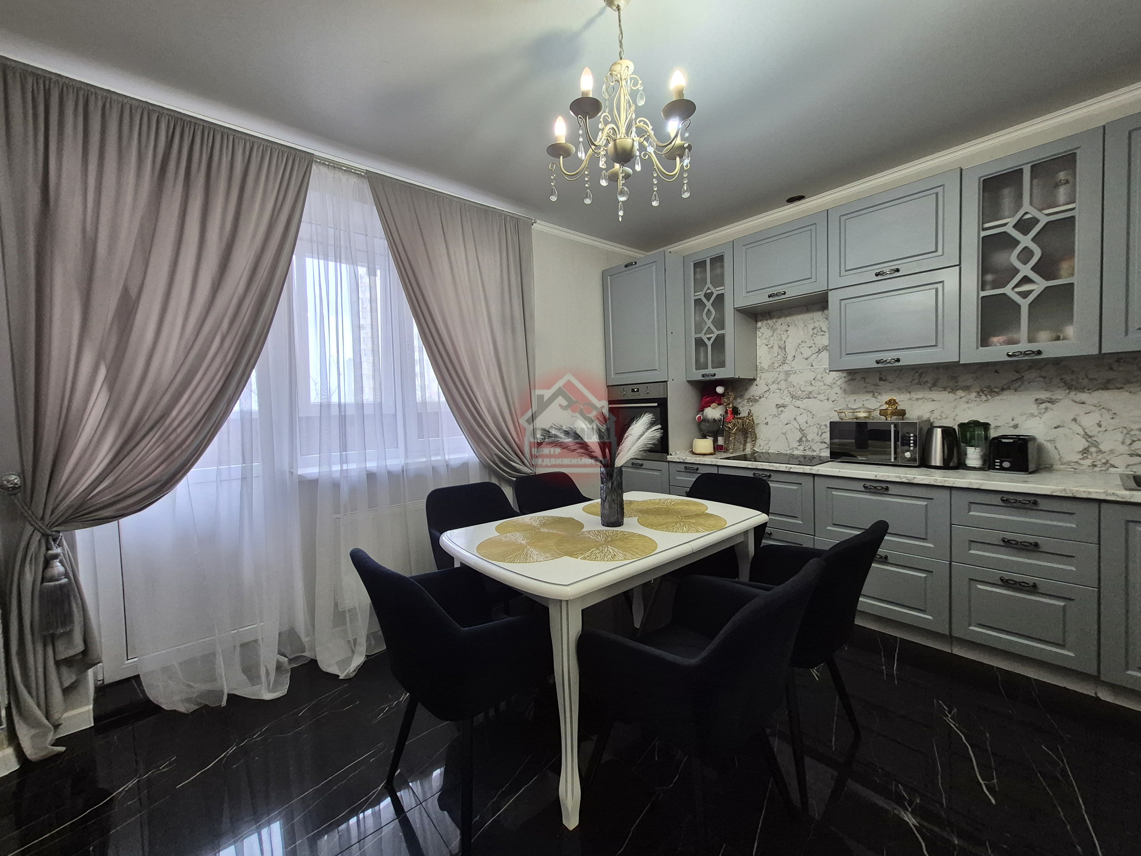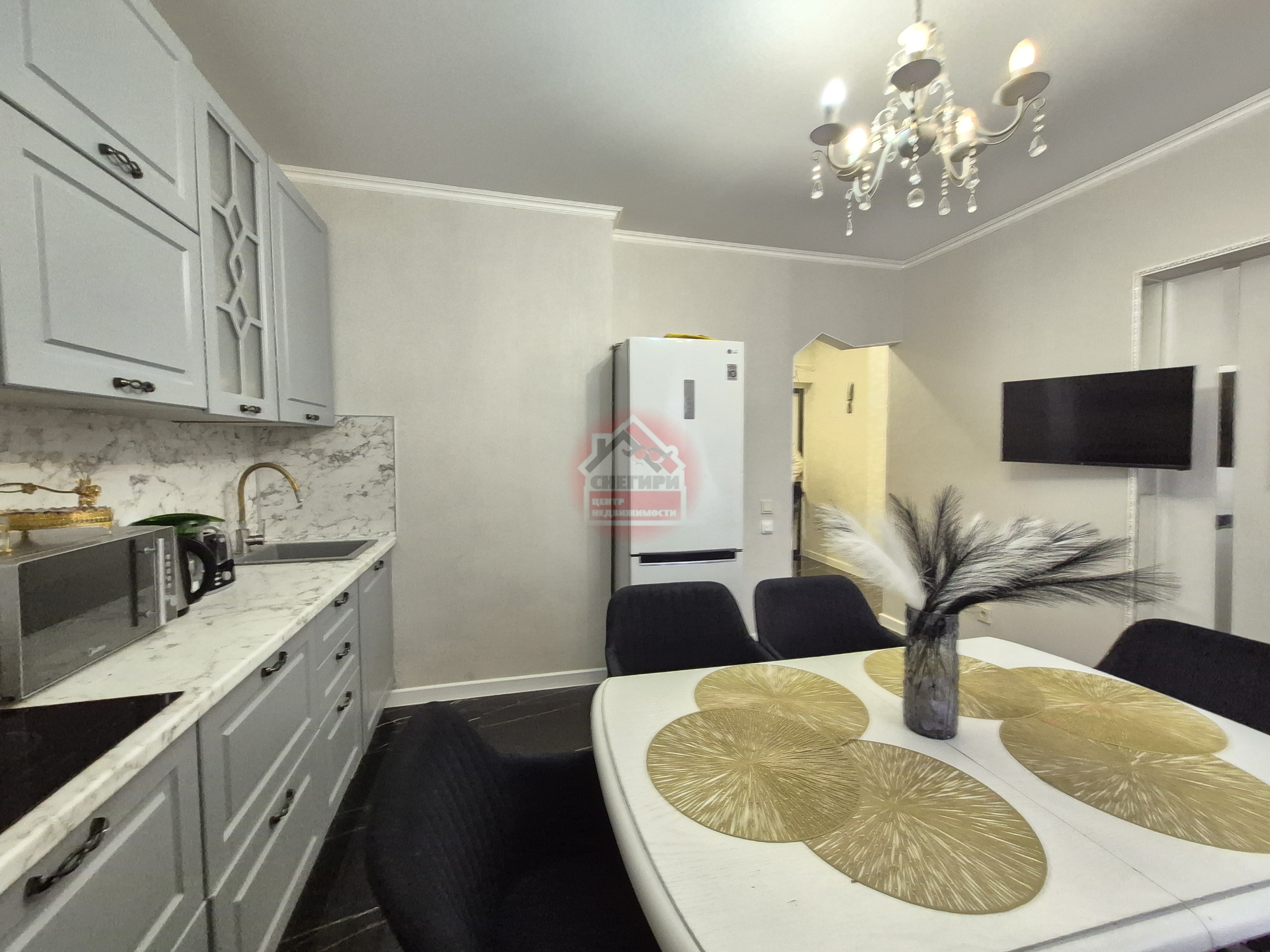 • В комнатах и на кухне установлена современная мебель и техника — всё остаётся новым владельцам (по договоренности).