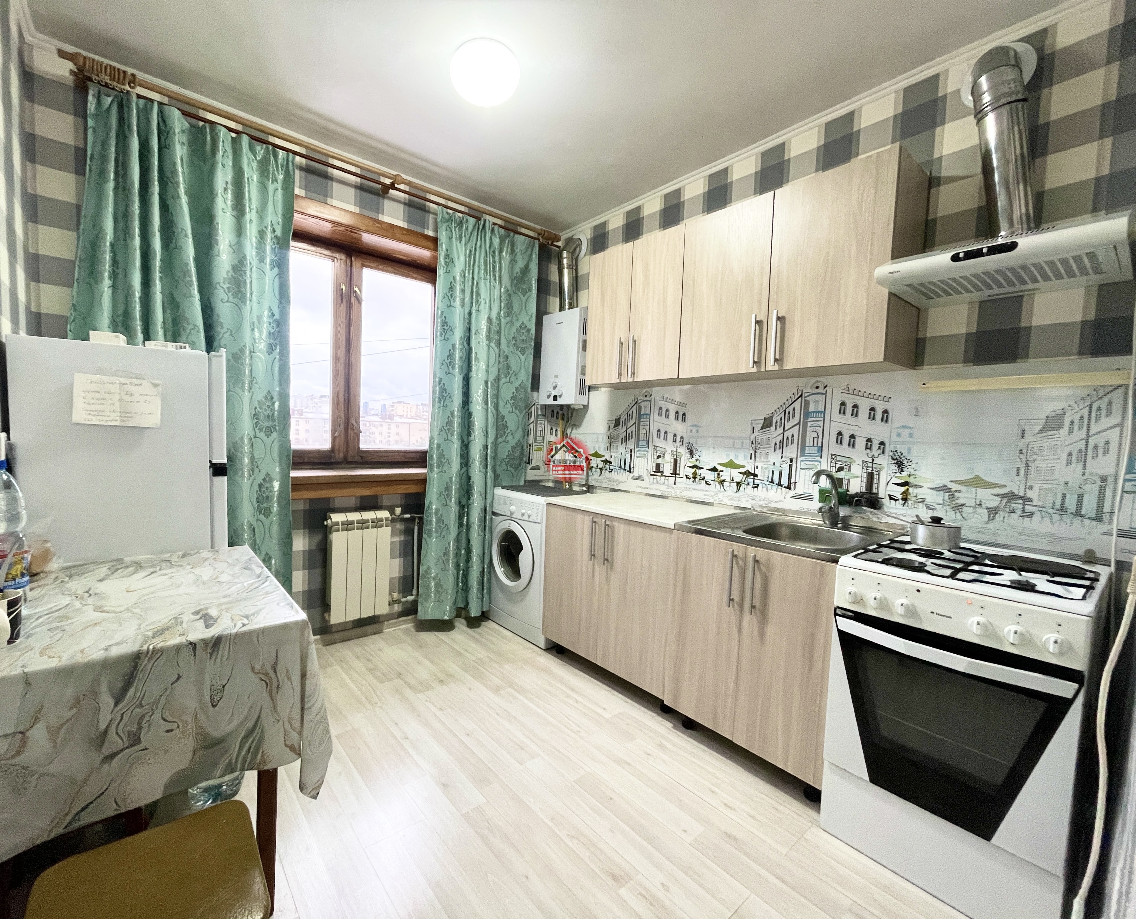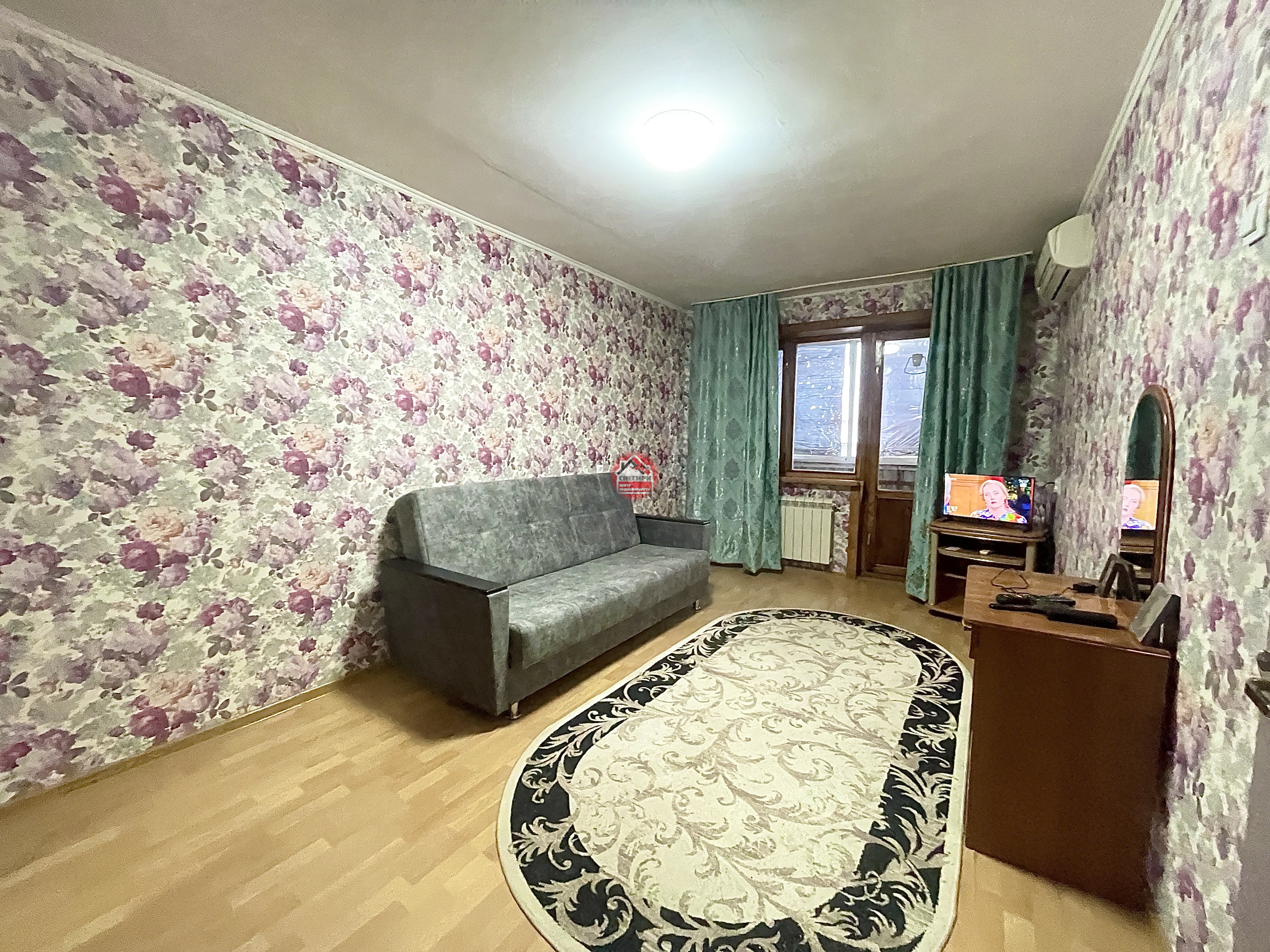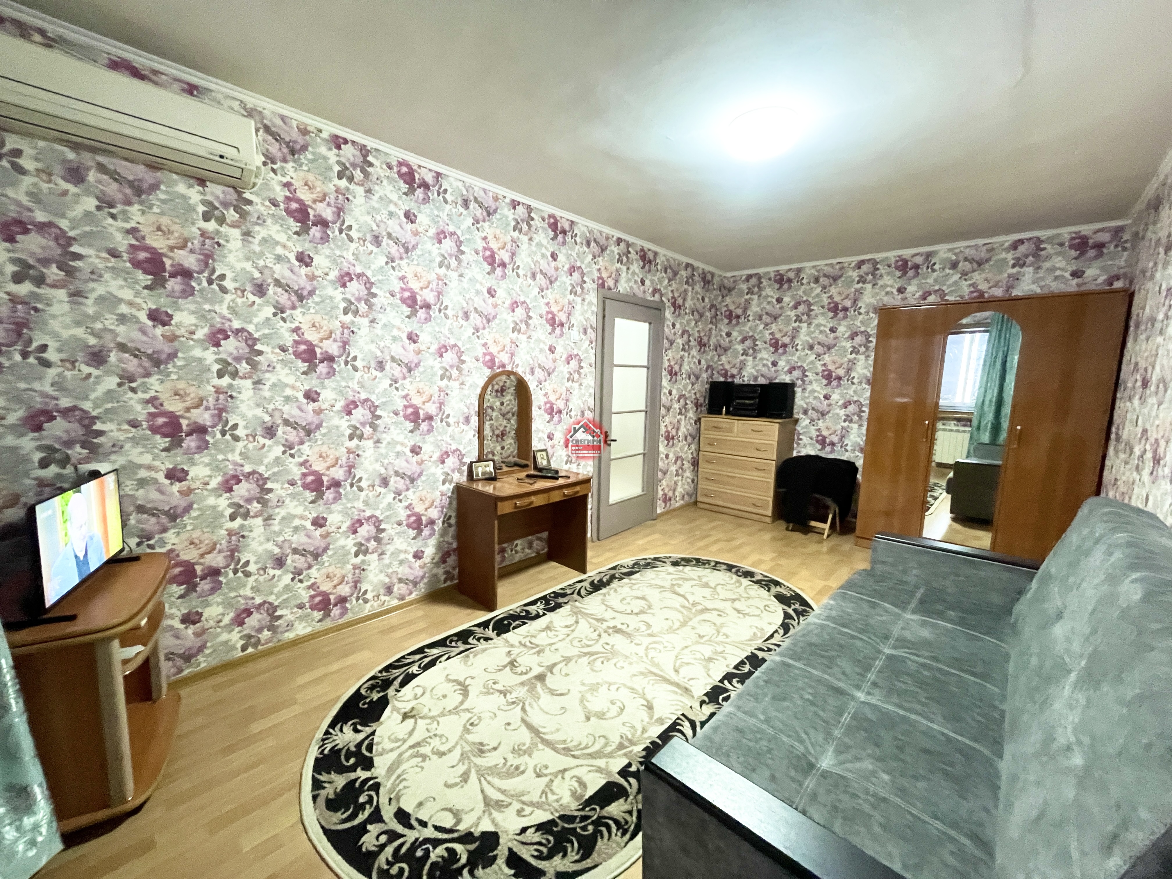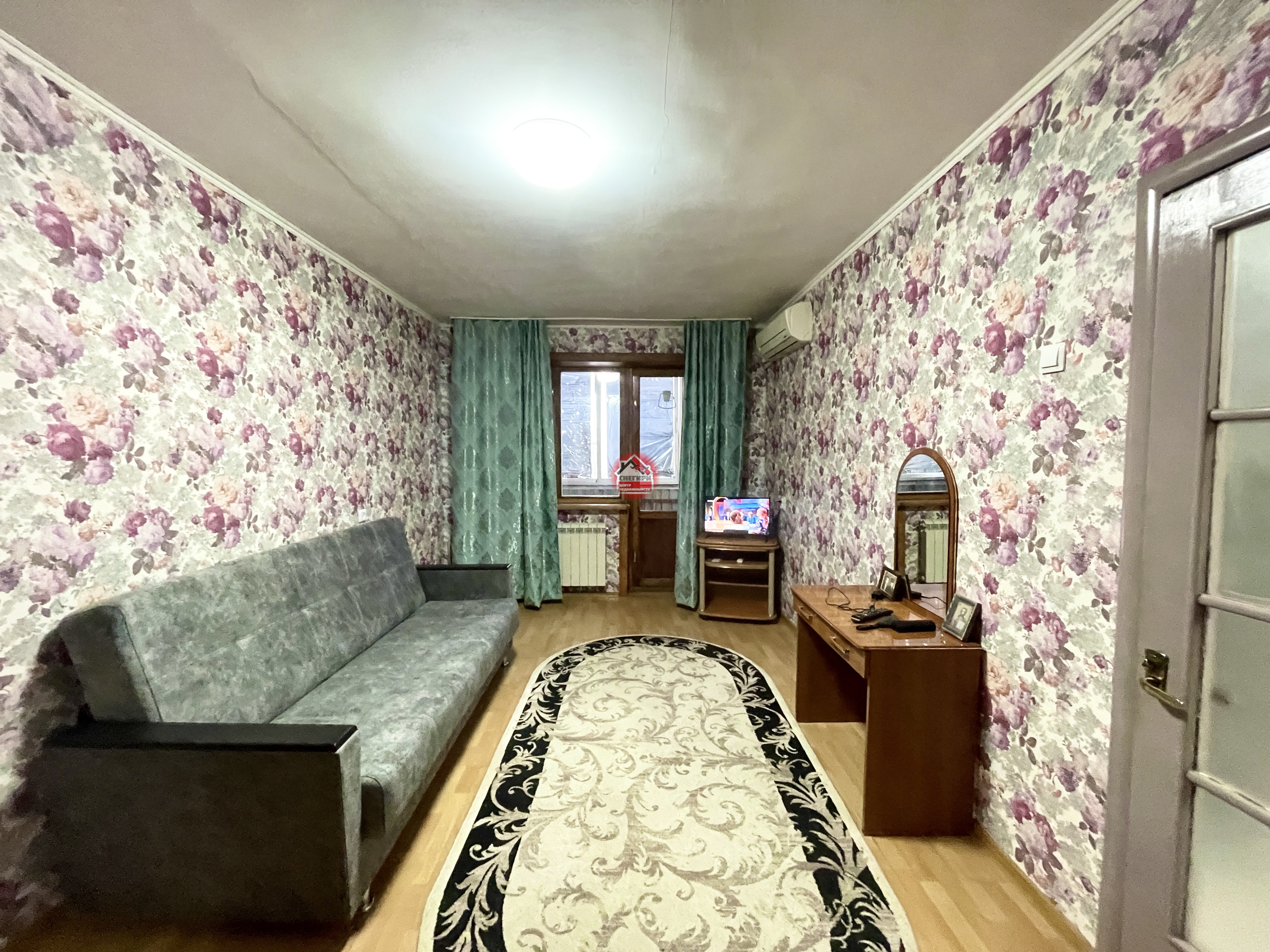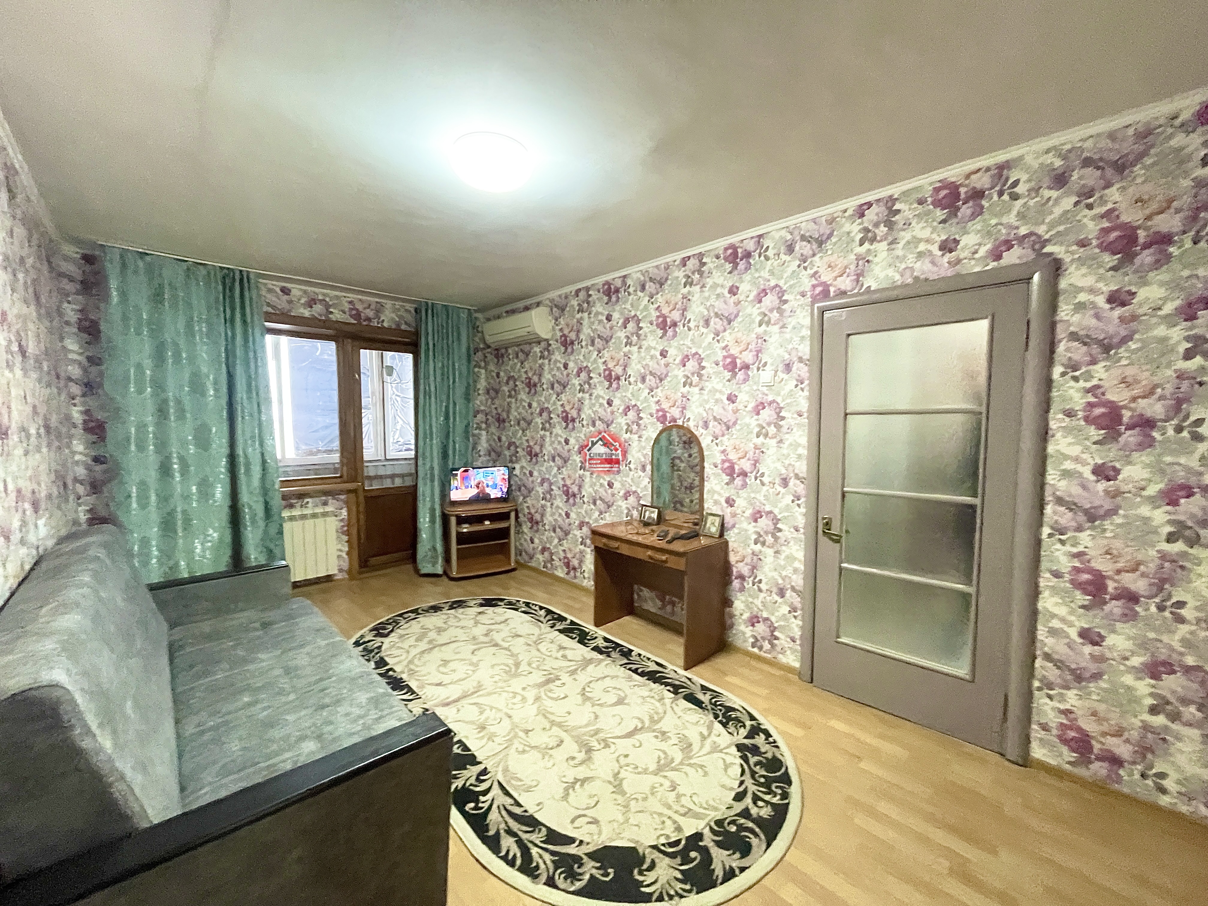 Мебель остается : диван новый, холодильник. Потолки 2,7м.