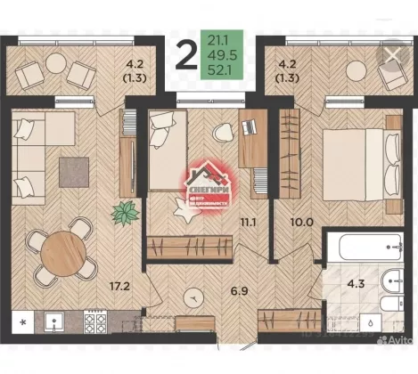 Площадь, кв.м.52.1