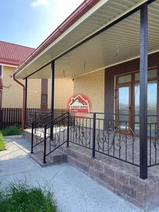 - терраса с навесом, металлические перила с ковкой;