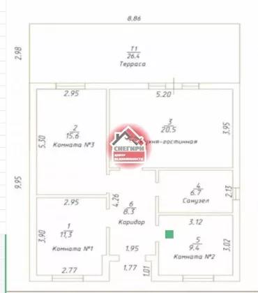 Функциональная планировка: 3 изолированных жилых комнаты; просторная кухня-гостиная; сан/узел, коридор и удобная терраса.