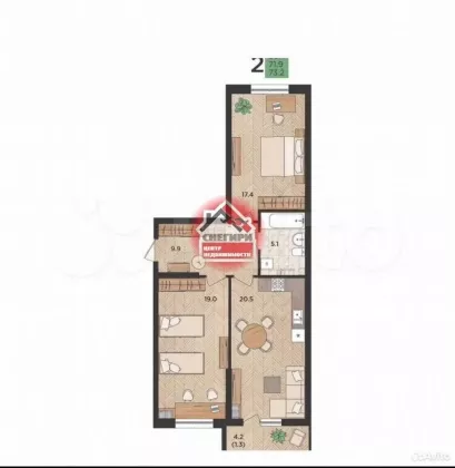 | Площадь, кв.м. | 74.5 |