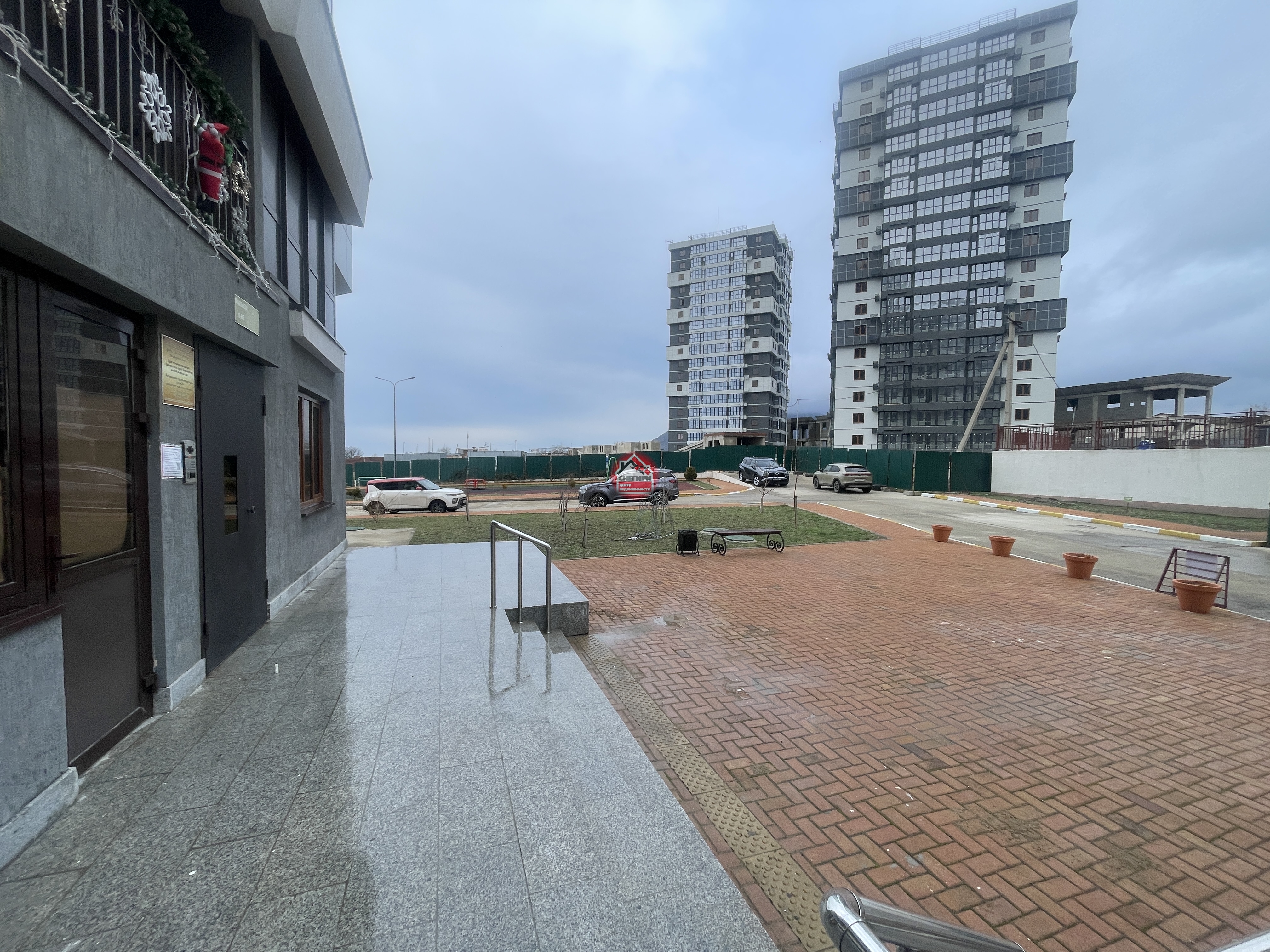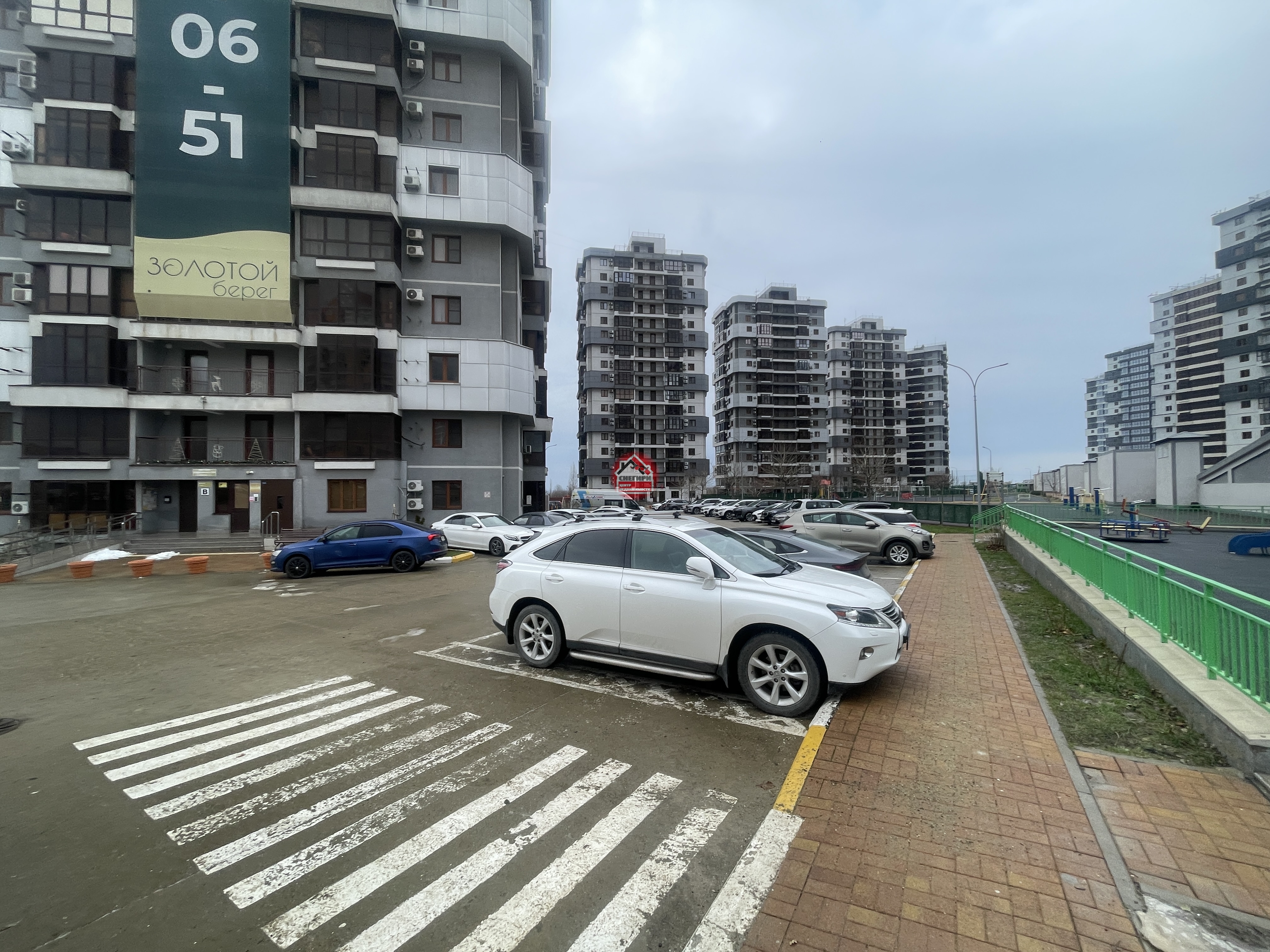 На территории огромная наземная парковка и дополнительно подземная.