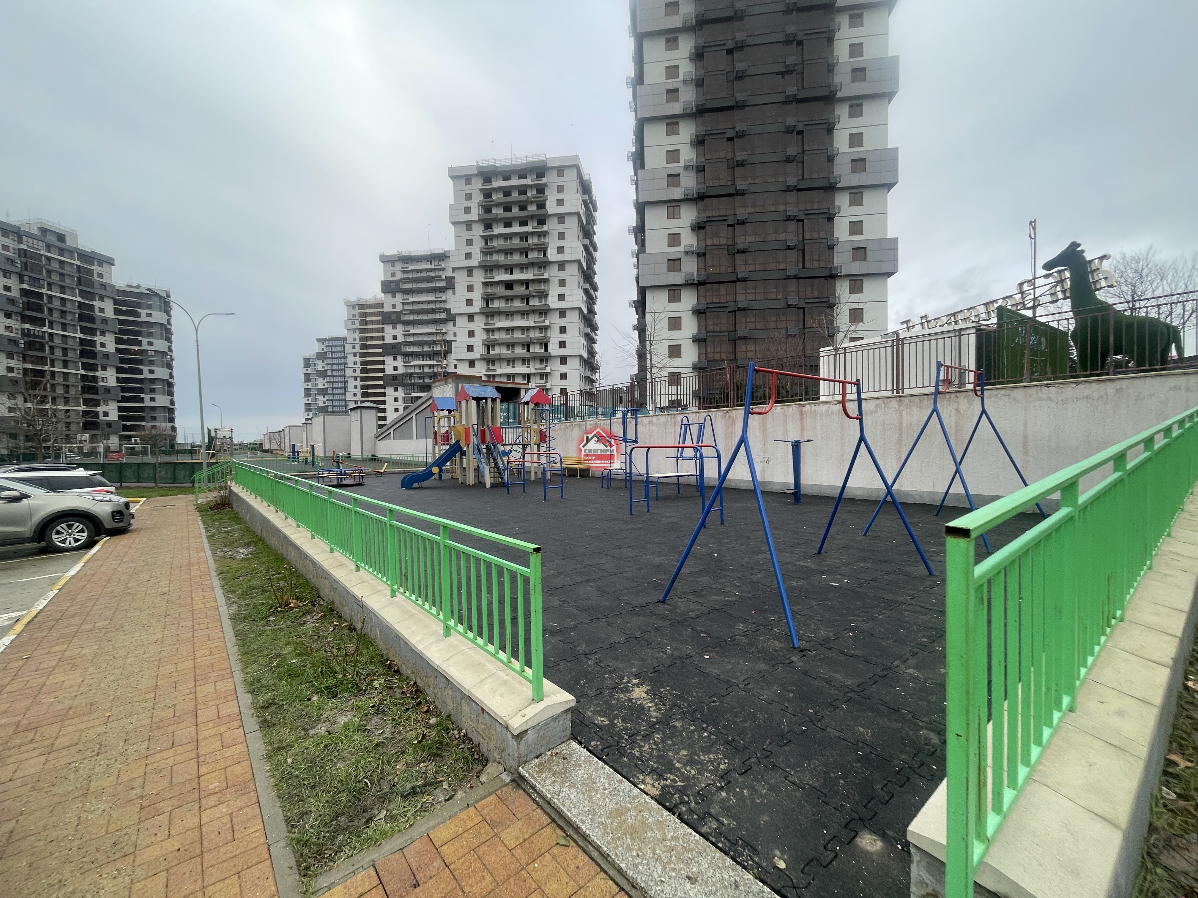 Придомовая территория ухоженная, оборудовано множество мест для отдыха, занятий спортом и несколькими большими детскими площадками для детей разных возрастов.