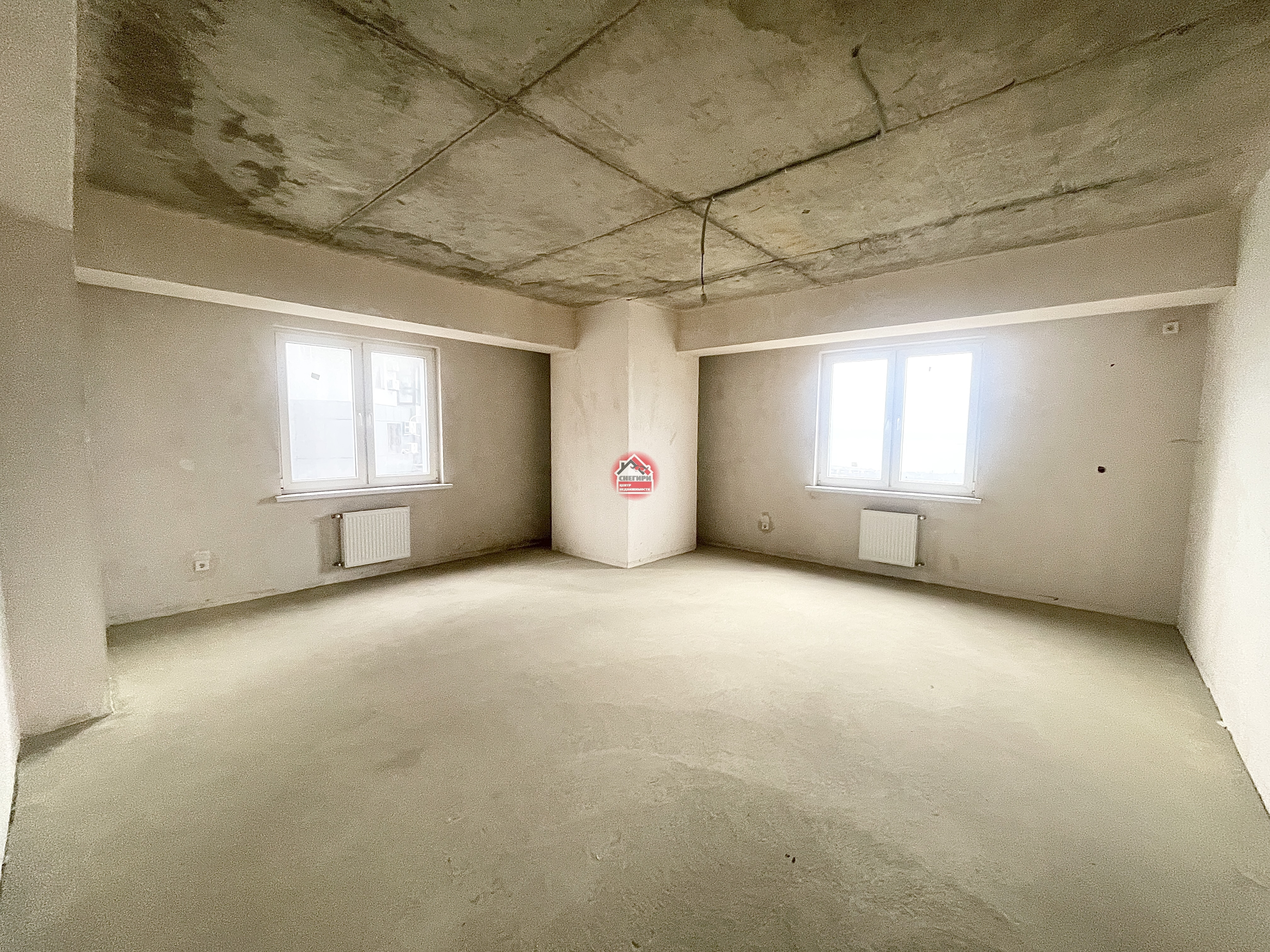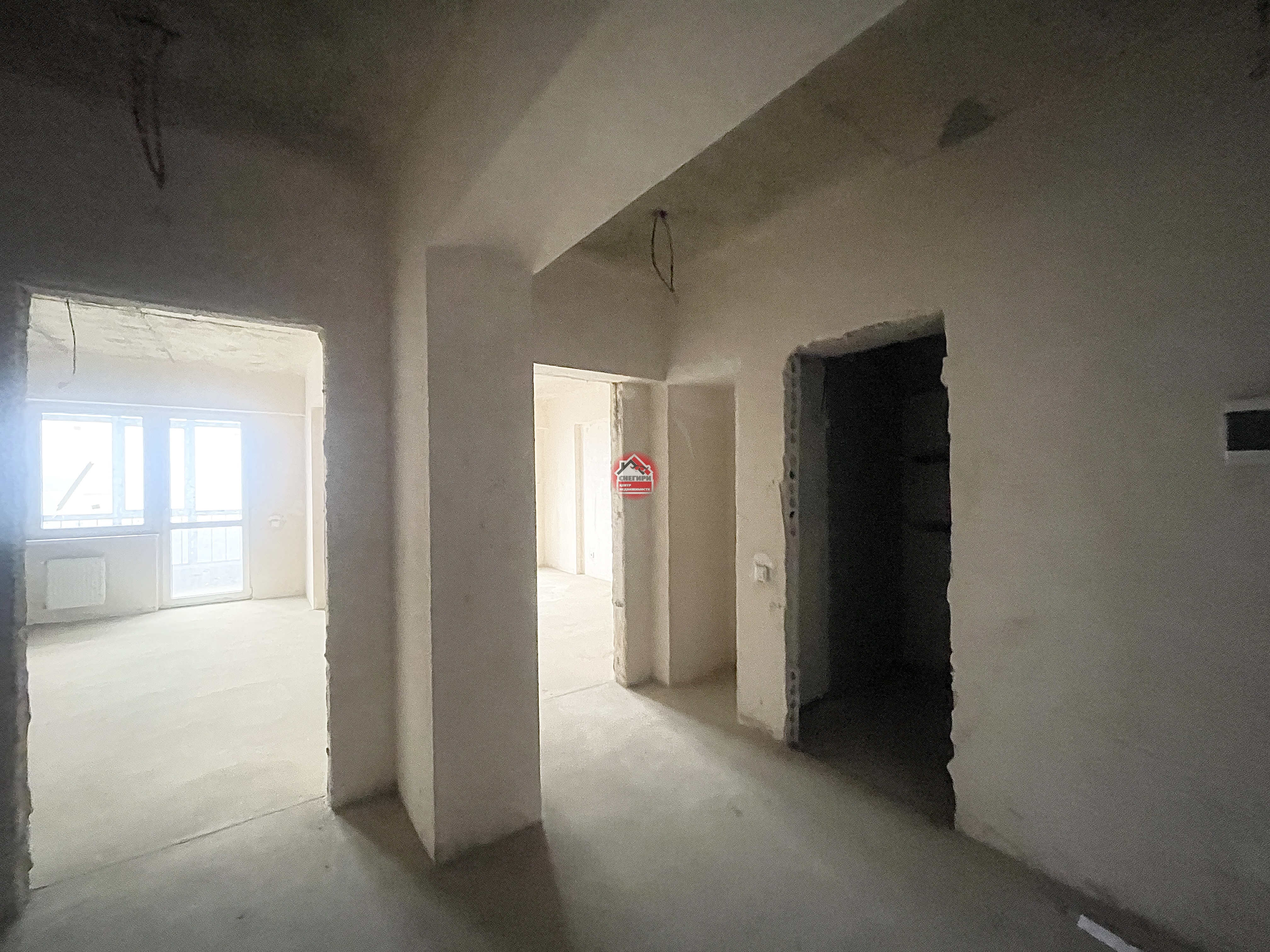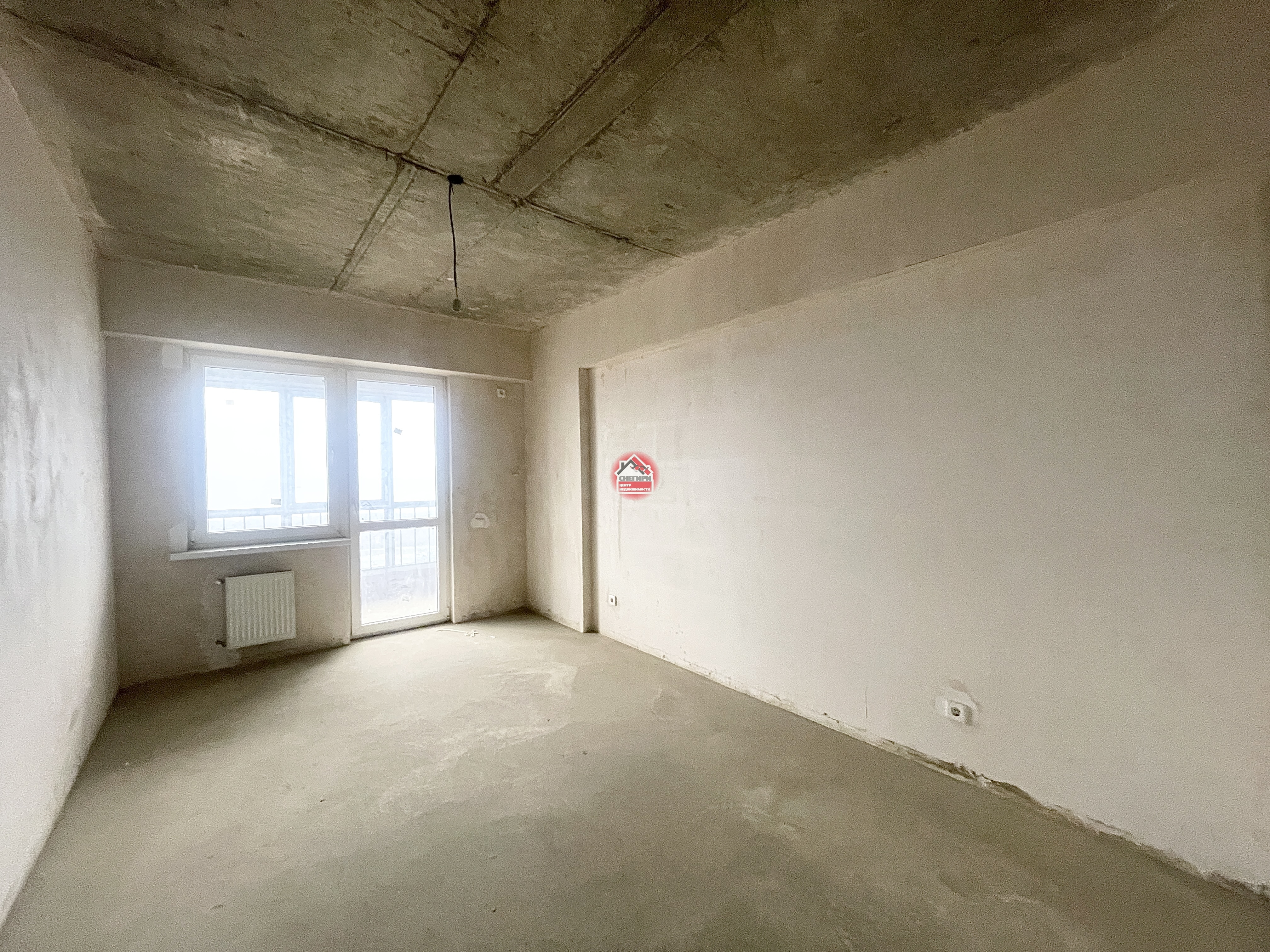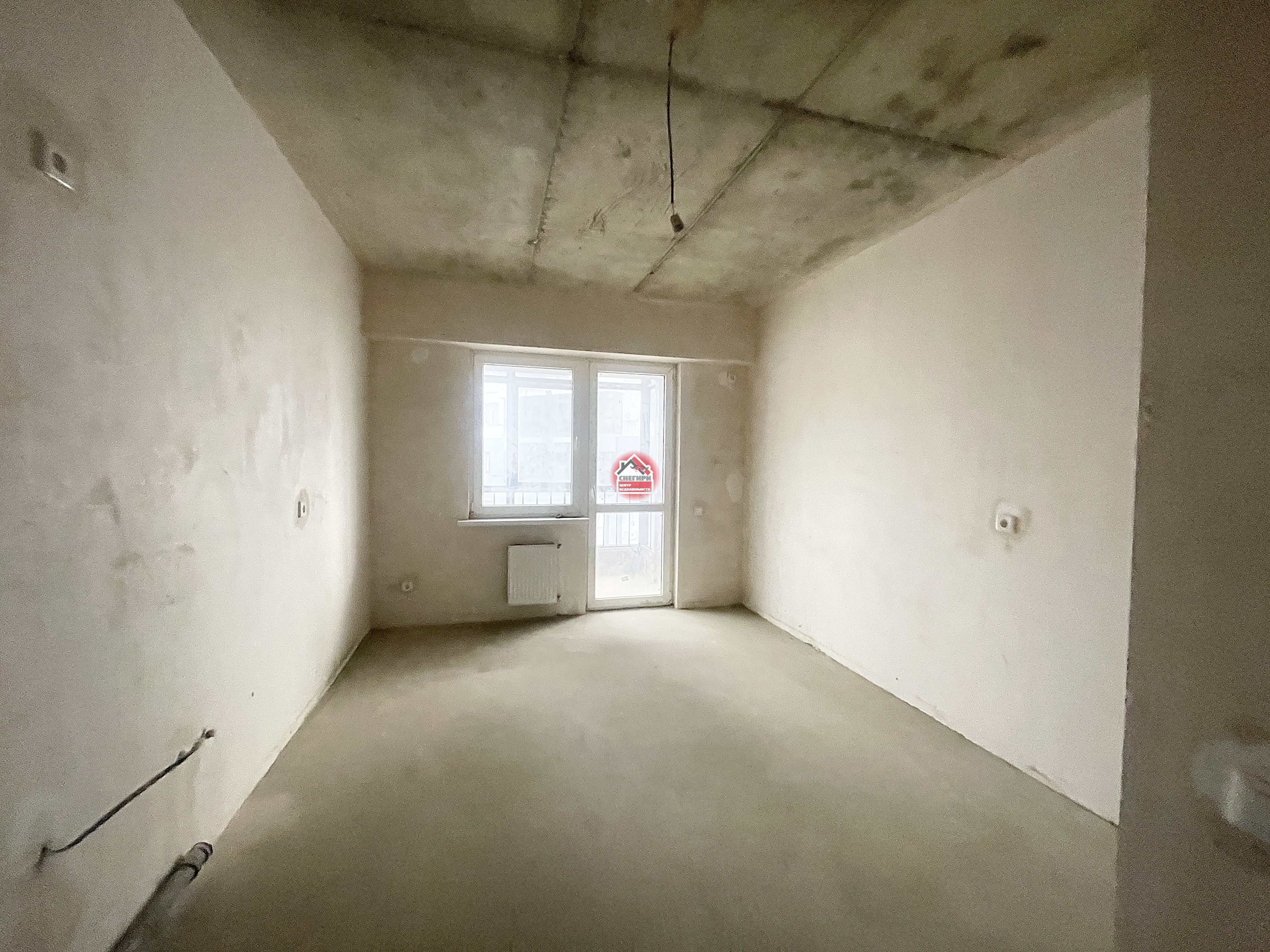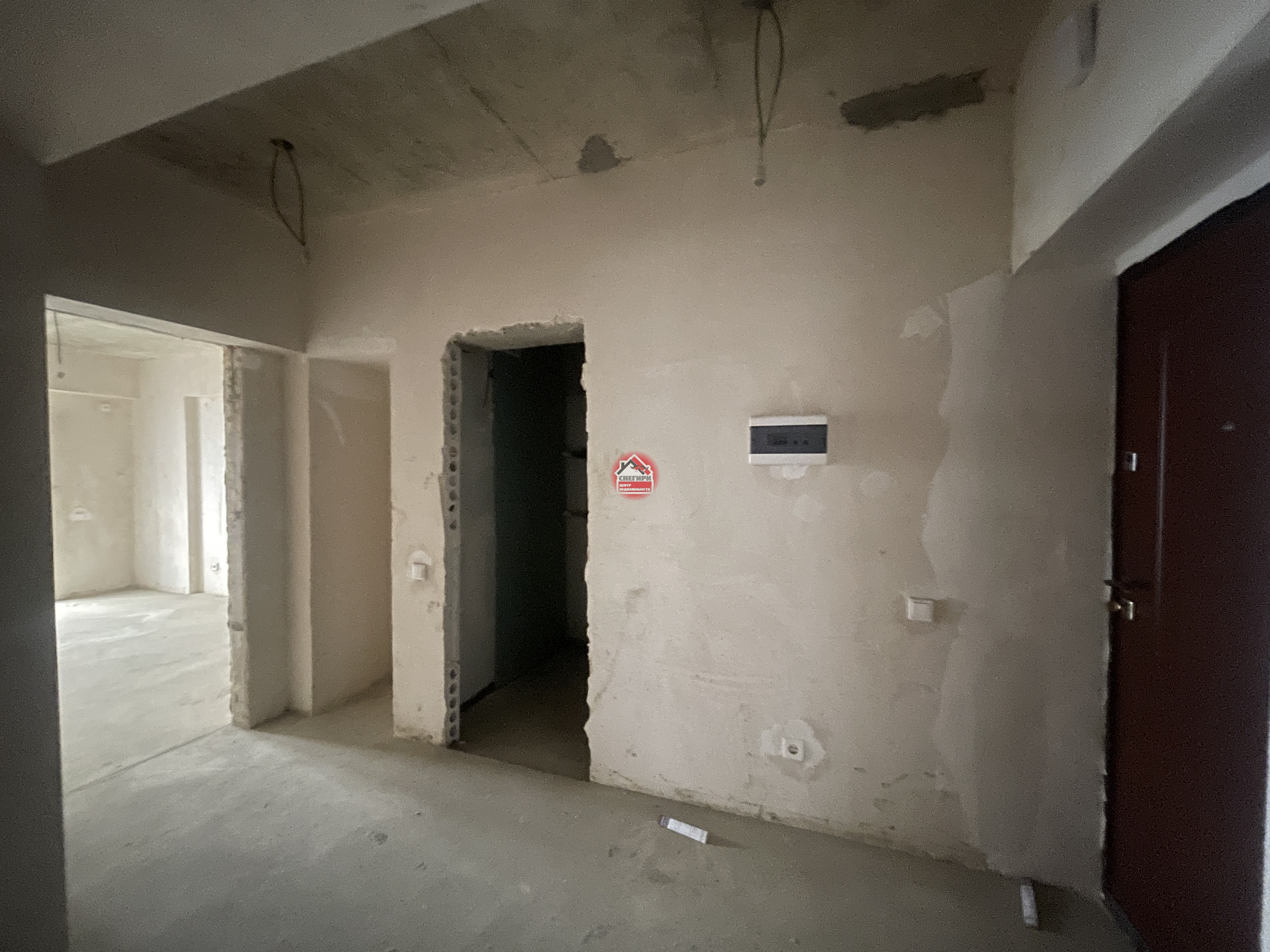 Предчистовая отделка, стены оштукатурены, выполнена стяжка пола, проведена разводка электричества и водоснабжения.