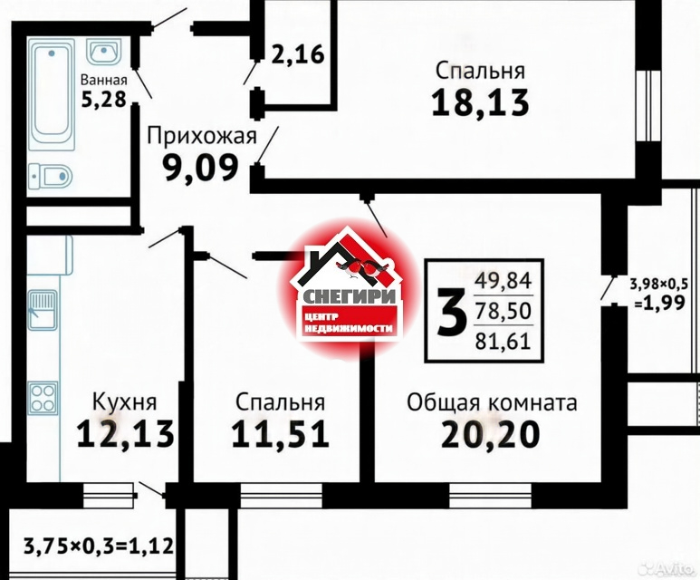 • Общая площадь с лоджиями 85.8 м² (по выписке 79.2 м²).
