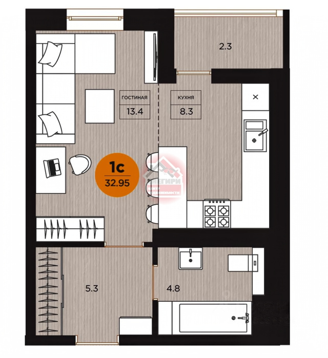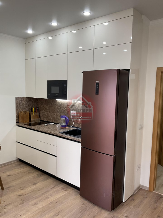 В студии продумана каждая деталь: встроенная мебель и техника гармонично сочетаются с общей обстановкой, создавая уют и комфорт (индукционная двух комфорочная варочная плита, вытяжка, встроенная микроволновая печь, большой холодильник).