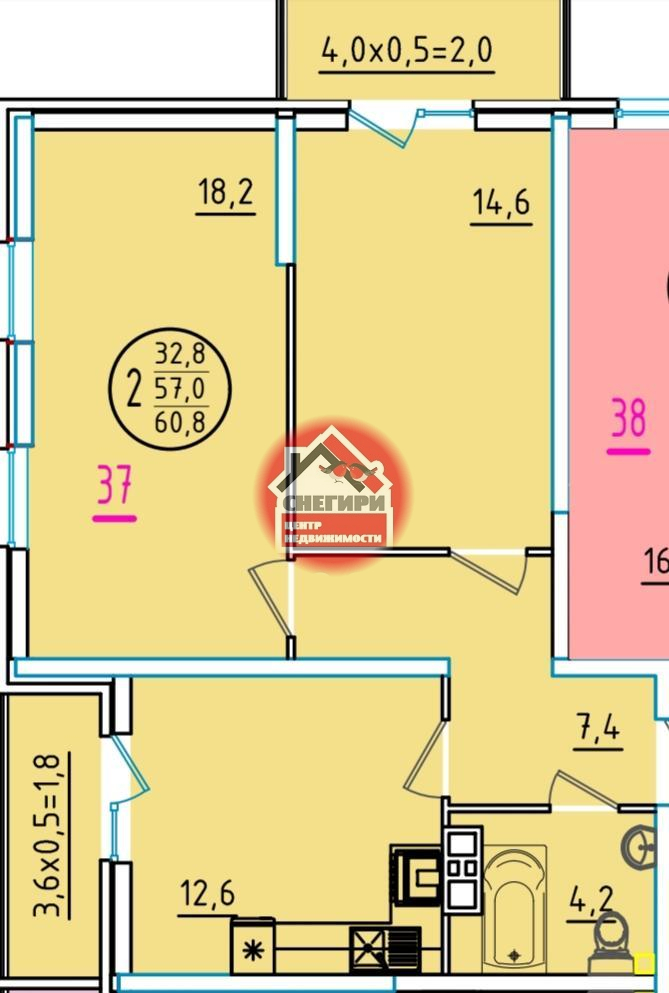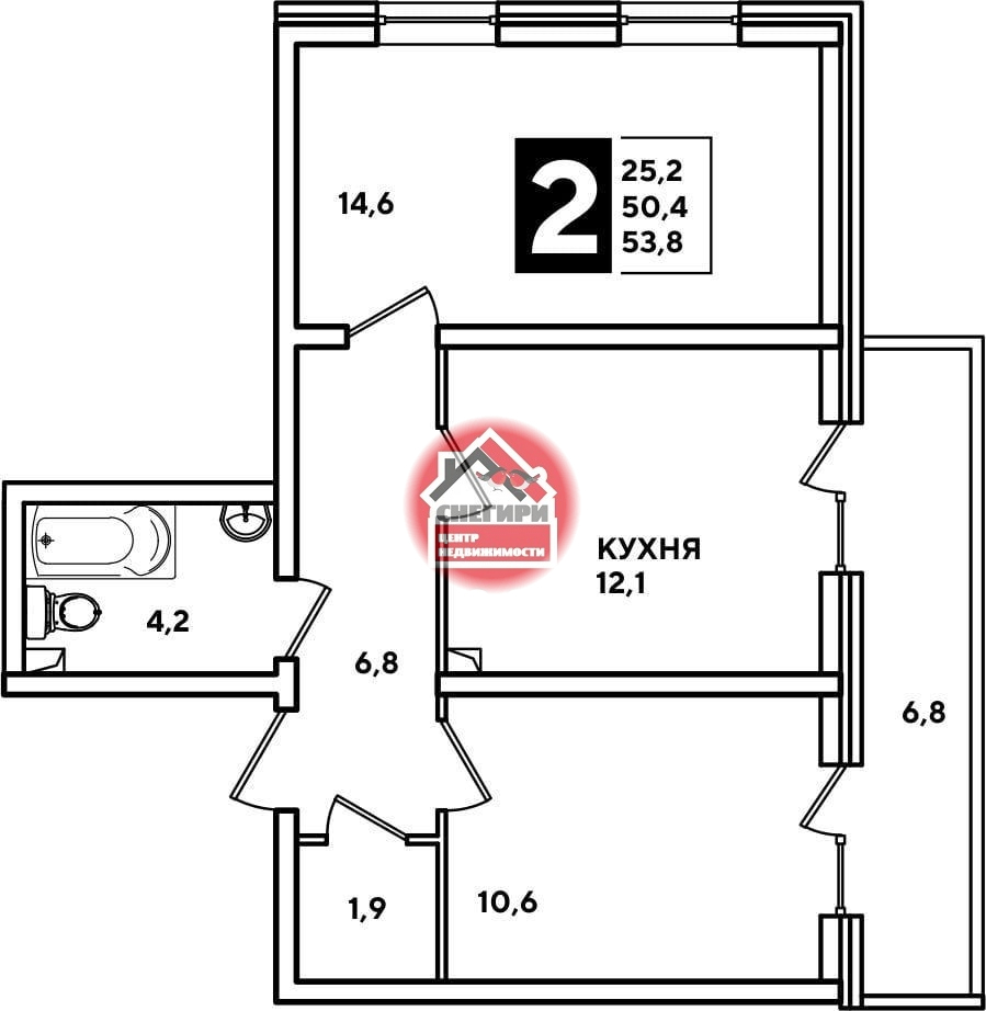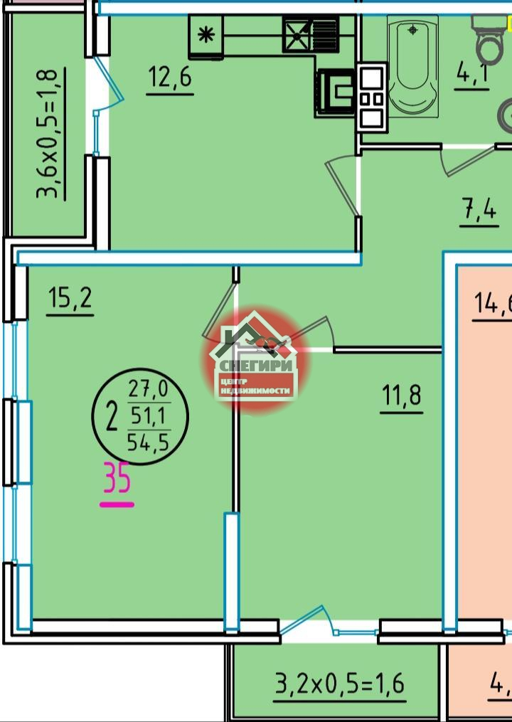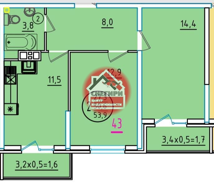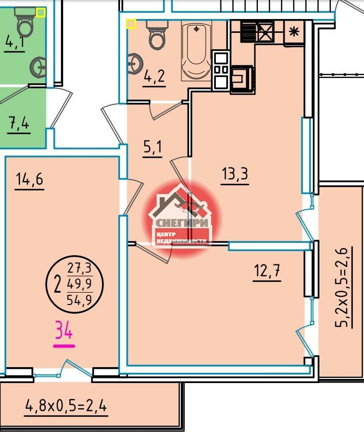 2-комнатные от 52.1 кв.м до 97 кв.м.,