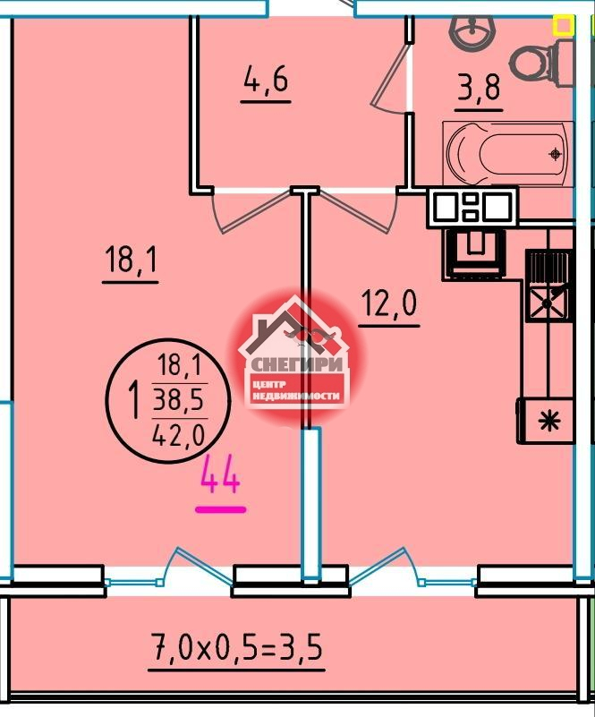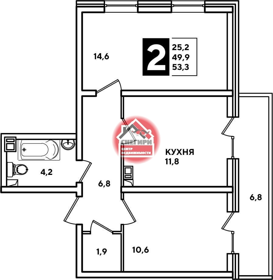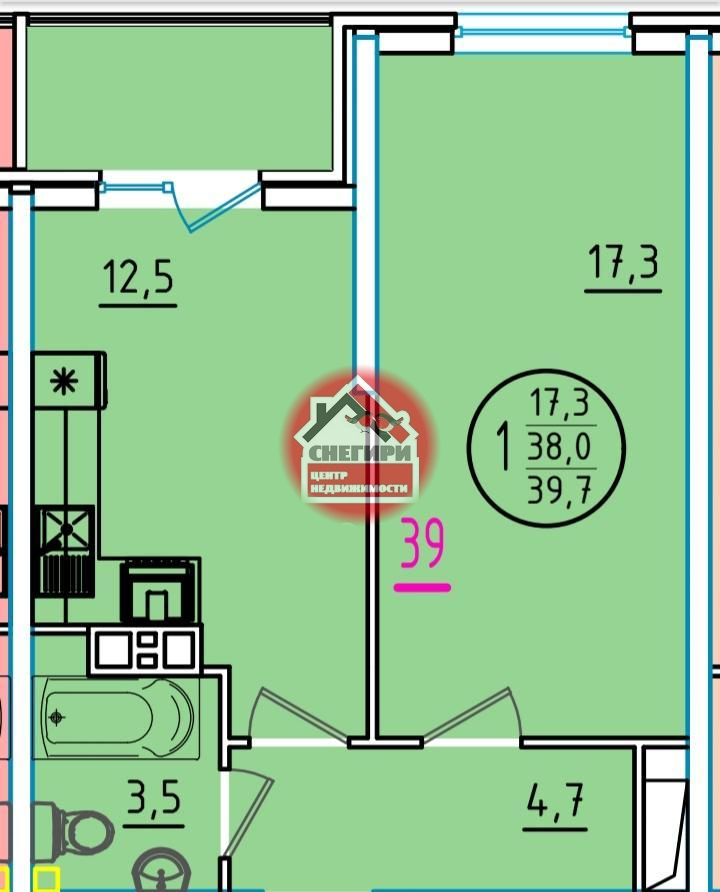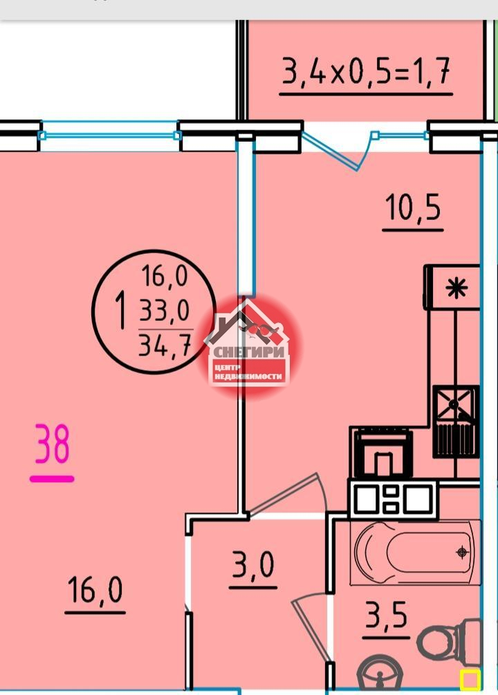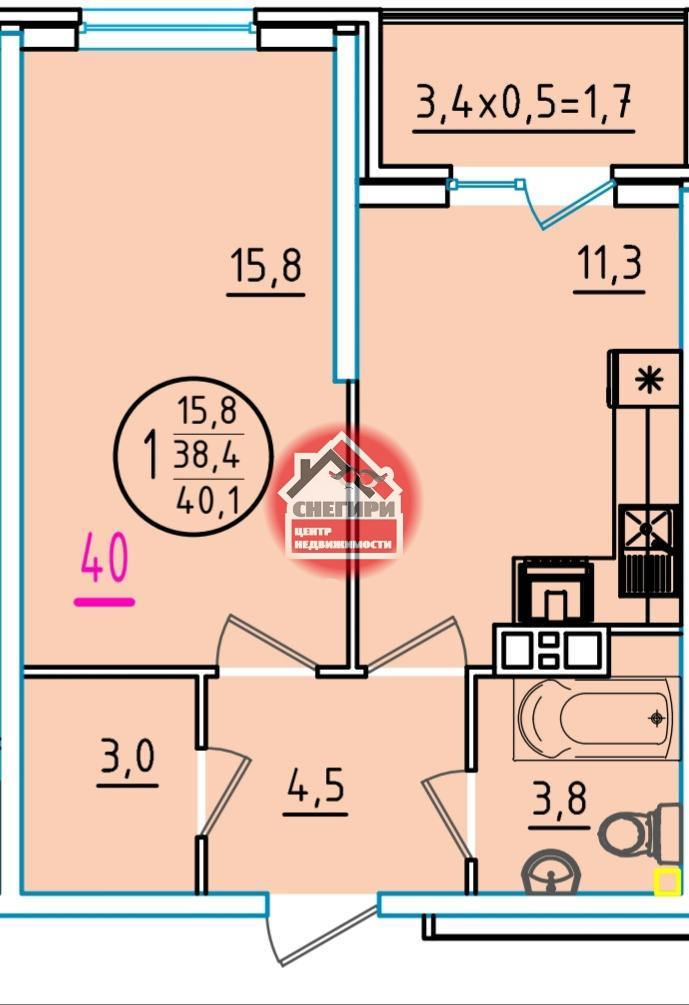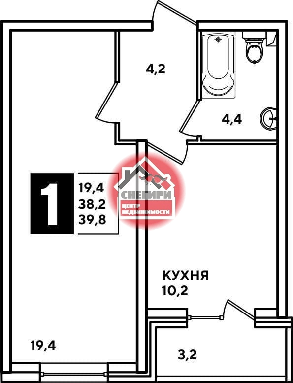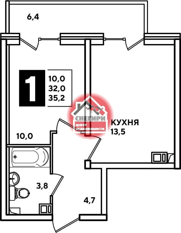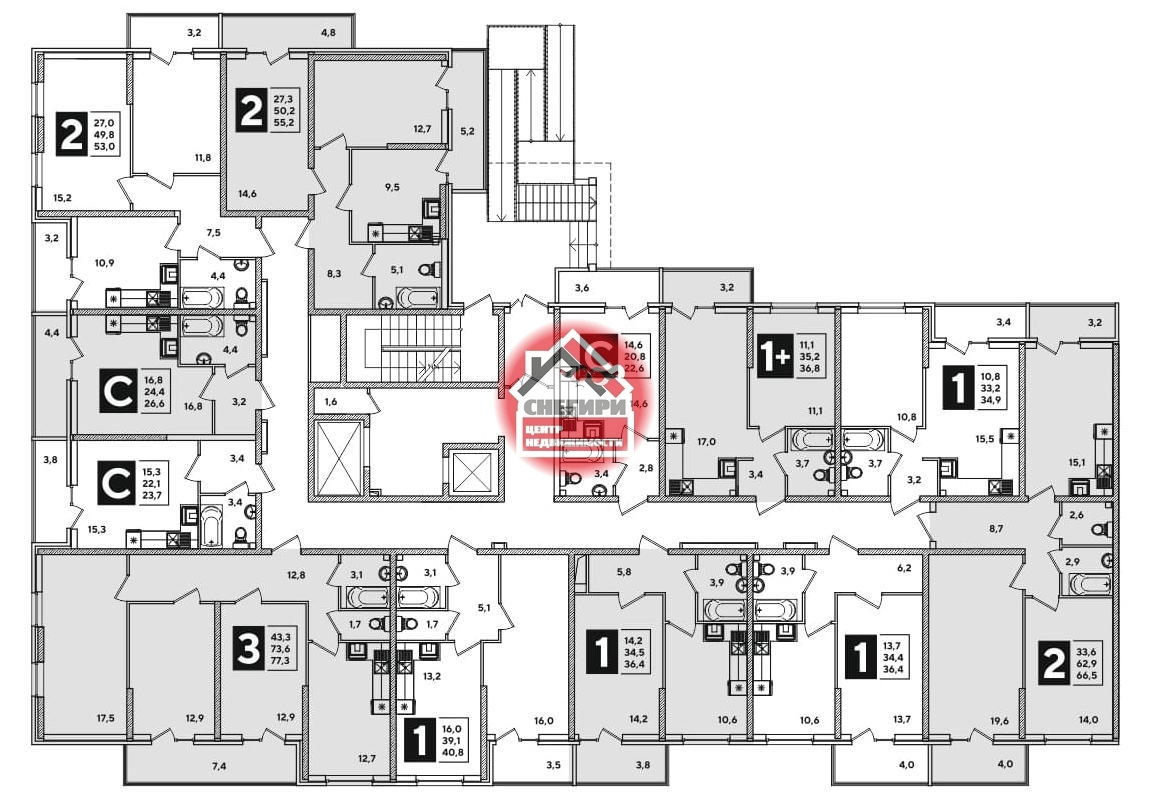 1-комнатные площадью от 29.9 кв.м. до 66.6 кв.м.,